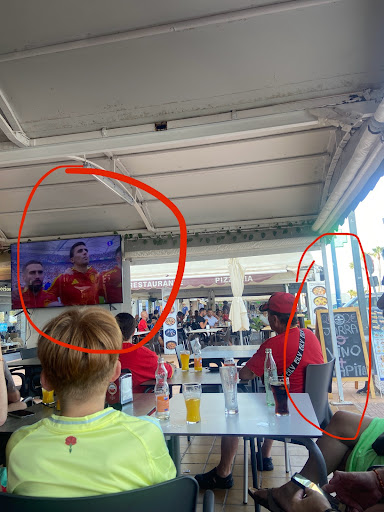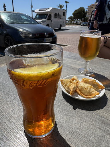 Read moreHemos venido varios días durante nuestras vacaciones y nos ha parecido un sitio con precios razonables hasta hoy que hemos venido a ver el fútbol. Nos han cobrado 5 euros por un café solo y un café con leche (estos días de atrás era euro y algo cada café). Después hemos pedido dos jarras con tapita por 2 euros que ofertan durante el partido, como se puede ver en la foto, y nos han traído dos tercios a precio diferente. Su respuesta ha sido que durante el partido suben los precios como quieren ya que pagan el Movistar a 300 euros. Les he dicho que lo transmitían por TVE (gratuito) y que no se puede subir los precios a su antojo sino que tienen que estar publicados en la lista de precio y respetarlos, cosa que no hacen. Además, tienen 3 pantallas para ver el fútbol y una de ellas va adelantada varios segundos por lo que para el resto de clientes ya no tiene emoción...