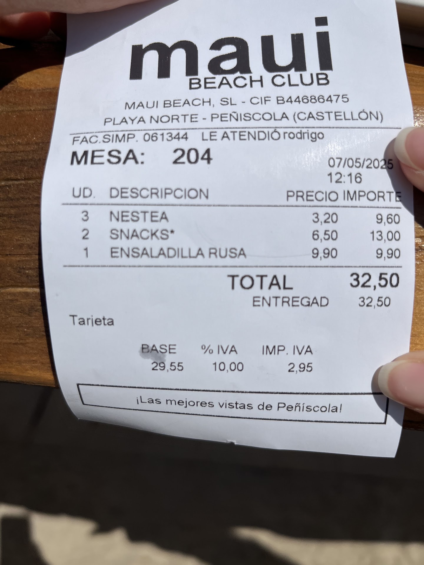 Read moreAyer tomamos una cerveza como otras veces lo hemos hecho en el chiringuito de la playa 4 euros...nos sentamos hoy y nos dicen que como hay fuegos en la playa tenemos que pagar 2 euros más de suplemento en cada consumición...pero a donde hemos llegado? Nos hemos levantado y nos hemos ido y la cerveza de todas noches a partir de ahora será en otro sitio que no se nos rian tan descaradamente en la cara......me parece una vergüenza ..cada cual que piense lo que quiera...a mí no me engańaran más .ese es mi caso ....noche exclusiva por los fuegos con un mínimo de 6 euros la consumición ....vamos me parece que así no tienen buen estreno x bonito que sea el chiringuito si actúan así....contando que tienen muy buena competencia alado con muy buenos precios...que no nos ponen mínimos de consumición un día ...