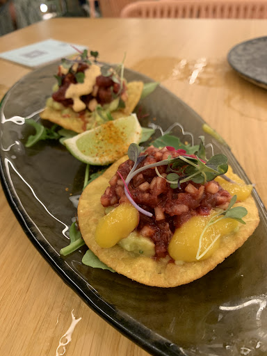 Read moreNice views and comfortable seating, definitely looks great based on appearance. I only had a bloody mary oyster and an order of tacos. Food looked better than it tasted, especially the tacos. It was not really a taco, more like a ‘tostada Mexicana’ which is perfectly fine, but don’t call it a taco hehe. The shell tasted stale as well, making it a little hard to eat, and there was barely any fish in them. Really pretty to...