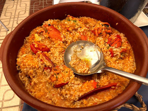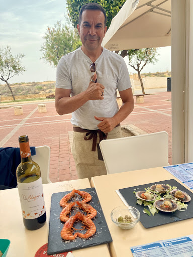 Cosas buenas y cosas malas. En verdad habría valorado con 3'5 estrellas, pero no existe esta opción, 4 me parece mucha puntuación, pero 3 creo que no hace justicia. Llamé para reservar, lo primero que me extrañó es que tengas que decir ya si quieres arroz o no. No sé, es un poco precipitado tener que pedir sin ver la carta, máxime cuando no has estado nunca. En cualquier caso es un tema que se puede zanjar rápidamente: pedid arroz, es de largo lo mejor. Una de las cosas que menos me gustó, hasta el punto de encontrarnos mal y optar por no tomar ahí café ni postre, fue el excesivo calor que hace en la terraza exterior a la hora de comer. La zona de pérgola sólo cuenta con cuatro ventiladores enfrentados entre sí que sólo cubre dos de las tres líneas de mesas. Si estás en una de las dos líneas a las que da el ventilador mal, pero la de aquel. Como te toque en la central el calor es totalmente insoportable (este es un factor de fácil solución del cual espero tomen nota en el restaurante). En lo que a la comida se refiere: Gran mariscada. Es mínimo para dos personas a 29 € cada uno, o sea, dos personas 58 €. La sirven en dos tandas. La primera una cazuela con mejillones y almejas. Los mejillones muy buenos. La segunda ronda bogavante, navajas, cigalas, gambas... En mi opinión una relación calidad precio no acorde. No aconsejo a nadie pedir la gran mariscada (se llama así). Huevos rotos con gulas. Están buenos (10, 50 €). Croquetas de jamón. Tal vez de las croquetas con más sabor a jamón que he comido nunca (la ración de 4 croquetas con unas patatas en medio 6 €). Ensalada Argenta. Totalmente correcta en calidad y cantidad (5,50 €). Arroz caldoso con bogavante a 18,50 € la ración. La ración es generosa y lo más importante, el arroz está buenísimo. La mayor parte de las críticas hablan bien de los arroces y no puedo estar más de acuerdo. Es su plato estrella y por ende alrededor del cual ha de girar la comida del que vaya a este restaurante. En cuanto a las bebidas 2,50 € el litro de agua y 12 € una botella de Blanc Pescador (esto es el triple de su precio en supermercado, lo encuentro un poco demasiado). Por lo demás he de decir que el personal muy atento. Espero se haya entendido mi comentario. Es un sitio con alguna cosa que mejorar, pero recomendable no obstante y teniendo como objetivo ir a...