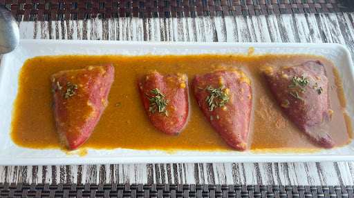 Hicimos menú de mediodía. Este parecía correcto, pero con matices, al traer los platos los entrantes son compartidos y varia mucho la calidad entre platos que en nuestro caso fue: ensalada con salmón y bacalao (mala), calamares a la romana (bien) y gambas al ajillo (notable). El plato principal fue pescado (lenguado), este no estaba muy bien limpiado y nos lo trajeron en una plancha ardiendo a la mesa, sin platos haciendo que el pescado quedara super pasado y que no nos lo pudiéramos comer a gusto a causa de la plancha ardiendo... A la hora de los postres ni nos preguntaron que queríamos, nos trajeron directamente unos postres de la casa sin más... La atención de la mayoría del personal fue mala tanto a la hora de servir como retirar los platos, a excepción de un camarero que fue algo más atento aunque parecía muy novato. Durante la comida nos sorprendió que en la mesa de al lado pidieron un arroz caldoso con bogavante 3 personas (con un suplemento de 6€ aparte de los 26€ del menu) y que apenas había arroz para estas cuando el arroz es el producto más barato, le preguntaron la camarero y este les dijo que era lo que había sin más. El local correcto, con buenas vistas si estas en terraza. En resumen no recomendaría ir básicamente por el servicio ya que es bastante deficiente, por la comida depende de lo que pidas ya que por lo que vimos tienen tapas que estan bien como pueden ser las gambas o calamares, pero por el menú de mediodía no iría ya que hay opciones mejores cerca y...