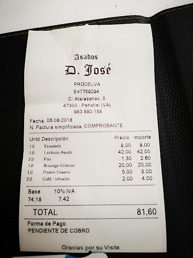 Read moreThis is the place to eat authentic "lechal" baby lamb of Castilla in Peñafiel with reasonable prices. The restaurant is grounded by a family and they still cook with real wood-burning oven (please ask them to show you I think it's pretty interesting). We ate 1/4 for two people after going on a visit to a known winery. The arrangement of the place is typical Spanish but it could be a...