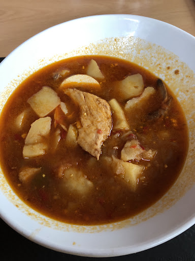 Read moreHicimos una parada para comer aqui en ruta. Pedimos tres menus de fin de semana, uno de ellos especial con cabrito y una racion de rabas. De lo que comimos, en general super salado, sobre todo las rabas. Especialmente buena la crema de marisco. El trato normalito. Tardaron mucho en atendernos, pese a llegar cuando casi todas las mesas habian terminado de comer. Y un detalle feo. Decir que tenia alergia al pimiento y que ibamos a compartir dos segundos y uno de ellos traerlo con pimientos en la guarnicion. La terraza es agradable. Sin embargo, un tema realmente preocupante para mirar es la planta de abajo donde esta la zona de los baños. La humedad es tremenda y el olor realmente mareante ya bajando la escalera. La construccion parece haber tenido una reforma reciente, no entiendo como este tema no lo han tratado aunque solo sea por salubridad... No volveria, en caso de andar por la zona nuevamente buscaria...