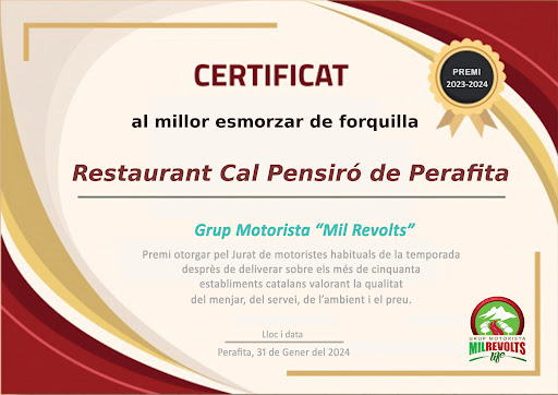 Quieres comer platos de cocina elaborada ? Quieres elegir el vino de una extensa carta ?? O quieres ser servido por personal con todo tipo de detalle ??? Pues entonces este no es tu sito para nada pero si amas la cocina simple, pero bien cocinada, con buen material, las raciones generosas y encima un precio que asombra hoy en día por lo económico que resulta pues entonces cal Pensiró es de cita obligada para lo que nos gusta esta cocina catalana tradicional que me recuerda a la que preparaba mi abuela, y esos locales con un cierto toque retro , no tienen ni wi-fi, con aire de las antiguas fondas donde de antaño el viajero hacía un receso en su trayecto para comer. Peus de porc, pollo al horno, vedella amb bolets ( riquísima), trinxat, escudella i carn d’olla son ejemplos de exquisiteces que nos ofrecen. Cocina rica y sencilla sin más pretensiones. El servicio es ágil y sin ser un portento de simpatía el personal va a la idea de servirte rápido y sin más protocolos. Mejor llamar para reservar porque el local es pequeño. Hay menú semanal, abundante y de tres platos y postre, el fin de semana solo tienen abierto el Sábado por la mañana para desayunar, y que tampoco tiene desperdicio. Sé que tienen habitaciones pero no he tenido la ocasión de alojarme por tanto no tengo opinión...