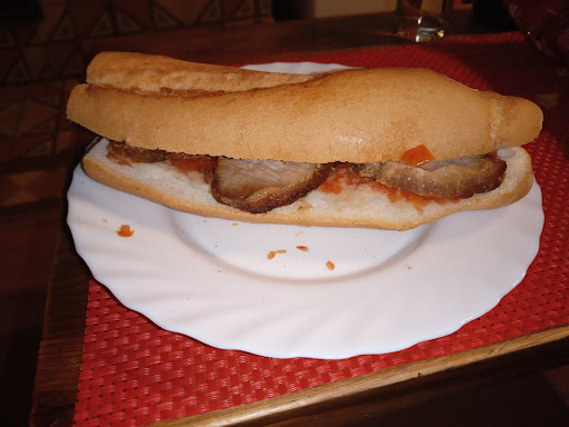 Al ser Domingo en Junio y al estar cerrados todos los sitios de la zona fuimos al bar en busca de algo para cenar y nos preparó dos bocadillos de lomo con tomate (adjunto foto demostrativa) que estaban de muerte!