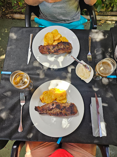 Read moreUnas aceitunas o unos cacahuetes: un detalle tonto que hubiese mejorado nuestra experiencia o, al menos, hubiese hecho la espera (unos 45 min) más llevadera. A pesar del retraso y de ver marchar platos a otros comensales que llegaron después, la espera mereció la pena: comida deliciosa, sitio agradable aunque nos ubicaron en el bar, no en el comedor; camareros profesionales y amables a pesar de tener el local totalmente lleno. Felicitar desde aquí al cocinero que, en una parrilla exterior en un día de lluvia, cocinó la carne en su punto. Seguramente volvamos para quitarnos este agridulce sabor de boca... Degustando sus tremendas carnes a la brasa de nuevo. (Puntúo con 3 estrellas con la esperanza de que el personal lea esta reseña y pueda poner solución a experiencias como...