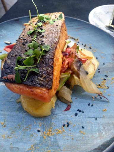We have had quite some good food on Mallorca, but this was just heavenly. Every bite was exceptional and I felt almost grateful for the depth and freshness of whatever I ate. I had the sea bass with potatoes and vegetables and was amazed by how the simple ingredients came together so melodiously. The olives and salsa-like dip were heavenly; potatoes were perfectly fluffy and the fish had the most perfect crispy skin, well cooked, and simply danced in my mouth with the lemon....
