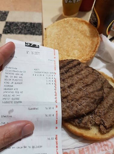 Acabamos de comprar unas hamburguesas para llevar en el autoking, estaba con el teléfono con la aplicación abierta para q me lo pasaran y acumular las coronas y no ha dicho nada de la aplicación, que siempre preguntan, y se lo hemos dicho nosotros al chico y mientras hablábamos nos ha devuelto el cambio y nos ha dicho que ya nos había cobrado q se lo teníamos q haber dicho antes. Le hemos dicho q le estábamos pagando en ese momento, ha cogido y ha arrugado el ticket y lo ha tirado y ha cerrado la ventana y nos ha dejado con la palabra en la boca. Menuda vergüenza de servicio y atención, encima de hacerlo mal ha roto el ticket y no nos lo ha dado y ha cerrado la ventana y se ha ido. Supongo que ha roto el ticket para no dárnoslo y que no pudiéramos reclamar, nos hemos ido porque no teníamos ganas de discutir pero no se pueden permitir ese tipo de comportamientos, el ticket te lo tienen que dar SIEMPRE. Encima cuando hemos llegado a casa hemos visto que se habían equivocado con una de las bebidas. Podían seleccionar un poco mejor a su personal y vigilar que cumplan las normativas legales y al menos unos mínimos de...