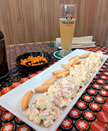Excelente local ambientado con música rock en su interior, buenas cervezas, maravillosos cócteles y estupenda comida, todo a un precio muy contenido, no se puede pedir más, además el personal es agradable y atento. Está vez probamos para dos personas la ensaladilla, la focaccia y el entrecot, mención especial a este último, te piden el punto de la carne y lo clavan, en nuestro caso lo pedimos al punto y en las imágenes se puede ver el color rosita de la carne, jugosa, tierna y con gran sabor, nos sorprendió para bien, parecía mantequilla al morderla. Todo acompañado con Paulaner de tirador y rematando uno de sus cócteles. Tocará volver a probar sus...