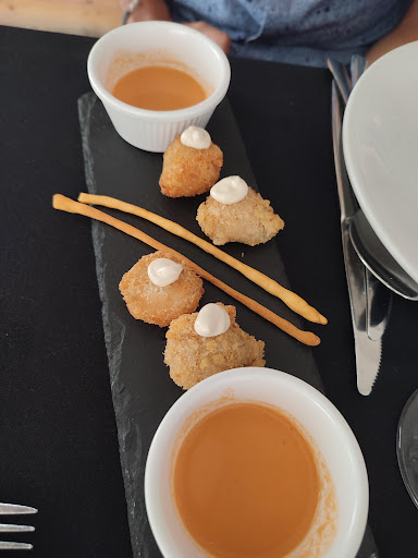 Read moreNos ha gustado mucho esta experiencia es un sitio apartado y tranquilo y nos atendieron muy bien. La decoración acogedora y nos pusieron la chimenea un detalle estupendo. Son menús que depende la cantidad de platos es un precio u otro. Nosotros cogimos el de 5 platos que son unos 18 euros por persona y la bebida a parte. Nos pusieron para la bienvenida unas croquetas de puchero con una teja de queso. Pedimos de primero una ensalada completa muy rica, unas croquetas de calamares a la inversa porque no eran tradicionales con varios sabores y texturas muy interesante, luego sushi de verduras rebozado muy original, pedimos carne a la brasa con puré de patatas y salsa de tomate y para finalizar solomillo con puré de calabaza y salsa de naranja y mango ha sido una experiencia única y volveremos y un coste de 40 euros que es muy correcto....