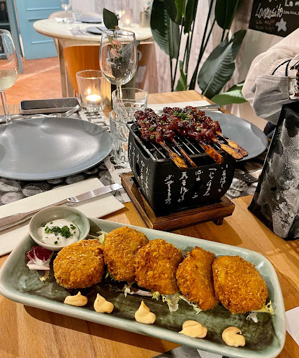 Estuvimos por Piera de vacaciones y de todos los restaurantes, el que más nos gustó buscando por Google Maps, fue este. Es un restaurante con fusión cubana y mediterránea. El restaurante es bastante grande, tiene dos salas, una más grande que la otra y en una de ellas tienes también una barra para tomar algo. Nosotros fuimos con reserva de mesa, pero es posible que si vas pronto, tengan mesas libres. Fuimos a primera hora de la tarde y estábamos prácticamente solos, y poco a poco se fue llenando. Tienen una carta con bastantes platos, desde entrantes, ensaladas, platos especiales, hamburguesas, sándwiches y postres. También tienen una carta de vinos y cócteles. En nuestro caso, pedimos tres entrantes; unos Tequeños de mozzarella con una mermelada de higo, un gofre con ternera y champiñones, y por último una focaccia de tomates secos, Parmigiano y rúcula. De todos ellos no tenemos nada malo que decir, igual lo más simple fueron los tequeños, pero con la mermelada de higo le daba un toque muy exquisito. El gofre con ternera fue lo que más nos gustó, el sabor dulce del gofre con el salado de la ternera y los champiñones, fue una locura en el paladar y la focaccia no tenía nada del otro mundo pero la masa estaba muy buena. Como platos principales pedimos hamburguesas, estas no nos gustaron tanto, para empezar el pan estaba duro, ya que lo calentaron en la plancha y este quedó duro y un poco incomestible. Una de las hamburguesas fue la vegana, esperaba otro tipo de hamburguesa, pero esta era una mezcla de calabacín, maíz, zanahoria y pimiento rojo compactado y frito con un rebozado, acompañado de una ensalada americana. Sinceramente me pareció horrible, el rebozado muy aceitoso y la mezcla de todo no tenía mucho sentido. De las peores hamburguesas vegetarianas que he comido, no la recomiendo. Y la otra hamburguesa fue la de ternera, acompañada con un huevo, bacon y queso. Esta si estaba muy buena y el companaje estaba acertado, lástima el pan. Vienen acompañadas con un cestito de patatas fritas caseras, estas si estaban buenas y sin nada de aceite. Y para terminar pedimos dos de los postres, una cheesecake y un coulant de chocolate con una bola de vainilla. El coulant estaba bueno y la fusión de la vainilla y el chocolate con trozos de galleta, muy acertado. El cheesecake no me gustó nada, el sabor ácido de la mermelada y los frutos rojos matan todo el sabor de la tarta, una lástima porque la tarta estaba muy buena. En general estuvimos muy contentos del servicio, el lugar y el trato. Recomiendo si vas a este lugar, evitar las hamburguesas a no ser que hagan cambios. Y los demás platos muy...