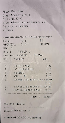 Es con mucha diferencia, el mejor restaurante de comida típica mediterránea de la Torre de la Horadada y alrededores. Fuimos 10 personas a una comida familiar y quedamos muy satisfechos, fue un día memorable para todos. Nos pedimos unas marineras buenísimas y generosas, una estupenda ensalada Doña Juana, con tomate, endivia, lechuga, espárragos, cebolla, rabanitos, maíz, zanahoria rallada, ventresca de atún, anchoa y huevo duro, aliñada con AOVE y vinagre de jerez. Y ya pasamos directamente a los arroces, pedimost 2 paellas, una de conejo con caracoles y otra de pollo con costillejas, ambas estaban insuperables. Todos coincidimos en qué hacía tanto tiempo que no comíamos un arroz casero tan bueno, por eso entré a felicitar a la cocinera!!! 🥰. El arroz estaba en su punto, suelto, nada grasoso, con un sabor exquisito pero sin nada de saborizantes ni colorantes artificiales, hecho con azafrán de hebra natural visible y súmale el detalle de las ramitas de tomillo que le daba un sabor a campo como hecho a la leña inigualable. Las raciones abundantes, casi todos repetimos y los platos quedaron sin un grano de arroz 😋😅. Otro punto a destacar son los postres, que son todos caseros, nos pedimos varios: teja con helado de café, torrija con helado bañada con Baileys, tarta de queso al horno, leche frita con helado de mantecado, los probé todos y de verdad no sabría con cual quedarme. La experiencia gastronómica fue extraordinaria. El ambiente y el trato muy acogedor. Si quieres disfrutar de la buena comida, hecha con materia prima de primera y cocinada con mimo y de un trato profesional y a la vez que amable, todo ello a un precio muy razonable, éste es tu restaurante. Nosotros volveremos sin lugar a dudaso y lo recomiendo...