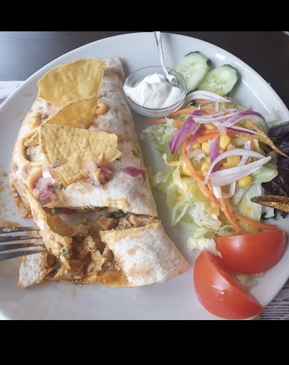 The burrito tasted ok, but serving old bread and non-mexican rice with bolognese sauce made a negative impact.