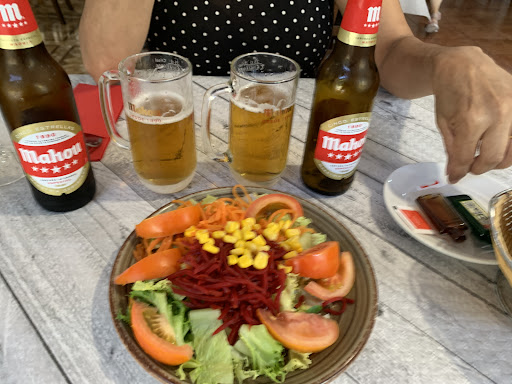 Read moreEntramos a tomar una cerveza ( Mahou) y estaba muy muy fría , como el ambiente estaba frío por los acondicionados y los ventiladores no se calentó , decidimos quedarnos a comer , cosa que resultó fácil aunque hubiera echo falta reserva , Rosa muy amablemente hablo con una persona que nos sentó rápido en una mesa, comimos menú , de principio y por cortesía de la casa te ponen una ensalada , que para dos personas está más que bien, el gazpacho bien bueno al igual que el arroz con magro y costillas , los Segundos pechuga de pollo empanada , muy bien echa y jugosa y ventresca de atún , en su punto y con sabor todo, la única pega , espero que sea crítica constructiva , la patata frita era congelada , pero por lo demás , 2 tercios de mahou , 2 primeros , 2 Segundos 2 postres y 2 cafés más la ensalada del principio , 30 € , mejor precio por imposible , la atención de Tosa que al final descubrimos que era su segundo día allí fue la creíble , amenazamos...