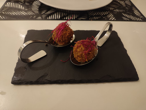 El rodaballo a la plancha también fue satisfactorio. Aunque no era de origen salvaje, para ser de piscifactoría estaba muy bien preparado y resultó agradable al paladar.La viera, aunque aceptable, no destacó como un plato exquisito y, considerando su precio de 8 euros, no es algo que volvería a pedir. Lo mismo aplica a la croqueta trufada, que no me convenció ni por su sabor ni por su presentación y textura; un plato completamente prescindible en mi opinión.