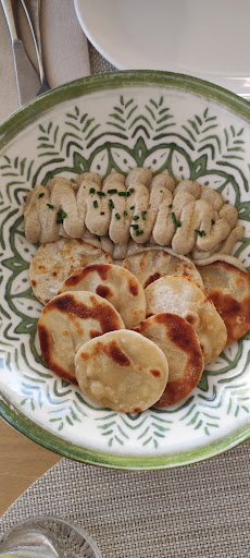 Read moreHabíamos venido en otras ocasiones y por eso estamos aquí de nuevo. Para hoy habíamos encargado un arroz meloso de marisco así que como hemos querido reservarnos para este plato, solo hemos pedido un entrante, el baba ganush con pan naan. Los dos platos esquistos. El baba ganush muy fino, y el arroz con sabor a mar sin estar salado ni pesado. De postre hemos pedido el que se llama piña y yogur, que consiste en escarcha de piña, streusel de albahaca y pistachos caramelizados... Qué rico y ligero, ideal para acabar con el homenaje gastronómico de hoy. En el comedor, a pesar de estar lleno, había una corriente natural de aire perfecta que refrescaba el local. Cuenta con ventiladores y A/A que hoy no hacía falta conectarlos con la brisa que corre. El trato del personal muy profesional y...