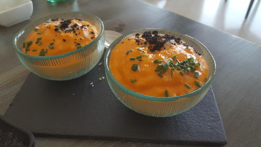 Read moreWe stopped here on Saturday for lunch and sat outside despite the brisk breeze and grey skies. We had the menu del dia, which is good value given the gastropub level of the food. The cream of cauliflower soup with cod tempura bites was superb - just the ticket on a chilly day. It was a large serving as well, which is unusual. I had sea bass in a sherry sauce, and my husband had an Angus burger, which he declared top notch. For pudding we both had what was essentially a deconstructed, upside-down strawberry cheesecake. The service was prompt and friendly. The only downside was that the drinks were bit expensive, E2.90 for a glass of ordinary-tasting white wine and E2.50 (I think) for a small glass of Turia. However, this is an above-average place and deserves four stars for the quality...