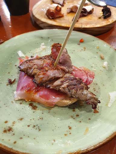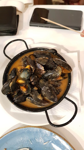If you ever stay in Pineda and are looking for a good tapas restaurant, this is THE place to visit. They have the best tapas (or technically montaditos because served on bread, which is typical Catalan) I have ever eaten. We visited this place with a group of 4 (including a picky eater). We all had around 8 picks and loved every single one of them, not a single disappointment. Even the picky eater only had one that she felt was a little less impressive but still it was good. All of them are packed with flavour and superbly prepared. There's no way to try everything on the menu, you'd need a few days. 2 of us are not into fish or seafood, but still we got to have a wide choice of variety. It was simply amazing. The staff is friendly and jokes around with the guests but they work hard and quickly. Pricing is extremely competetive even, for the 4 of us, each having; 8 montaditos, 1 dessert and a few drinks, the bill came down to 98 Euros! I am usually reluctant with tipping, but this was well worth a big tip. Once again the rule of thumb I go by when visiting restaurants abroad worked, if locals eat there the food is good and affordable and better than the average...