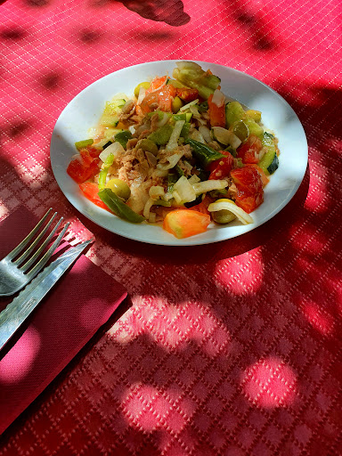 No sé por dónde empezar. Lo mejor de la comida en general fué la botella de vino: Emilio Moro. Empezamos bien, apenas había dos mesas en terraza y el camarero nos atendió amablemente. Nos cogió las comandas y le dijimos claramente: POR FAVOR, LOS PLATOS LOS TRAES UNO A UNO, PORQUE SE ENFRÍAN Y LA MESA ES MUY PEQUEÑA. GRACIAS! Setas, alpujarreño, ensalada de cogollos, longaniza...y la tapa!!! TODO DE GOLPE ENCIMA DE LA MESA! En menos de 10 minutos! A una temperatura ambiental de 10 grados! Cuando se enfrió aquello era incomible!!! Cuatro " camareros " de unos 18 años ( o eso aparentaban) por allí corriendo de mesa en mesa sin un orden y pasando platos sin control. Las " cocineras ", saliendo de dentro a fumar en plena puerta y delante de los clientes...sin comentarios. La comida: la tapa no estaba mal, alitas de pollo. Del resto pedimos medias raciones...MENOS MAL! Porque la calidad y el sabor dejaba mucho qué desear. La longaniza RECALENTADA y dura. Las setas escasas. Y el plato alpujareño...PENOSO! Caro escaso y sin sabor....también llevaba la longaniza reseca del otro plato...todo un detalle. Aguantamos porque tuvimos que terminar el vino. En definitiva, lo que fuimos a buscar en un paraje diferente, resultó ser una experiencia inolvidable. SEGURO QUE NO VOLVEREMOS. Lástima que estos sitios se nutren de los extranjeros y gente de fuera que viene y va. Por nuestra parte...