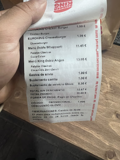 Read moreCogimos tres menús sin gluten y después de esperar el tiempo de preparación del pedido nos dicen que solo tienen pan sin gluten para dos de ellos. Ok, les pedimos que el otro lo pongan sin pan. Pedimos uno de los menús con Coca cola zero zero y cuando vamos a llenar el vaso, sale aguado. Aviso para que respongan y me dicen "no, es que Coca cola zero zero no hay" . Les digo que la opción sí apetece en la máquina y también en los menús, pero me insisten en que no hay opción. Les expreso el malestar porque ofrezcan cosas en el menú que no tienen sin tener ningún aviso para el consumidor de que no hay ciertas opciones. Comprendo que en un momento dado puedan quedarse sin alguna cosa, como el pan sin gluten, pero al menos que lo indiquen con algún cartel o aviso para que podamos elegir otro lugar antes de hacer el pedido, pagarlo y esperar todo el tiempo de preparación. De los cinco menús, además uno de ellos vino con la hamburguesa errónea. Tuvimos que volver a esperar otro rato a la preparación correcta. Dados los errores, solicité una hoja de reclamaciones y solo entonces me ofrecieron una Coca cola zero zero en botella en lugar de ser de máquina.... Podían haberlo hecho desde el principio en que manifestamos que no había en la máquina de bebidas.... Por otro lado, los menús normales han bajado muchísimo de calidad y tamaño. La hamburguesa del menú normal es ridículamente pequeña, como las aquellas de 1€ que ofrecían en McDonalds como complemento.... Para comer una hamburguesa de tamaño normal tienes que pedir el menú grande.... En fin, comprendo que en un establecimiento de comida rápida de este tipo tampoco se puede pedir una calidad superior, pero se nota muchísimo el deterioro de la misma según pasa el tiempo. Más de 8€ me parecen mucho por una mini hamburguesa ridícula, con cuatro patatas y un vaso...