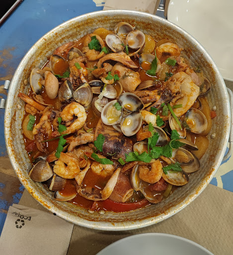 Read moreNotable descubrimiento el de hoy: un auténtico restaurante portugués, y lo dice alguien que va frecuentemente al país hermano, que quiere a sus gentes y que adora su comida y su música. Pedímos pulpo a la brasa, muy rico, la ración abundante (en otros sitios te cobran lo mismo y no es la mitad de grande la ración, ni está la mitad de bueno el pulpo) y acompañado de patatas revolconas de las de verdad, no el puré de patatas disfrazado de revolconas tan habitual en muchos sitios. Y seguimos con una cataplana de calamares, gambas y almejas, muy buena e igualmente, muy generosa. Todo acompañado con un vino verde muy digno y rematado con una tarta de requesón, rica y casera. Eso sí, mejor reservar e ir sin prisa, porque lo que se pide se hace en el momento y por eso, aparte de la pericia de quien cocina, está todo tan bueno. Y la atención, excepcional. De precio, como cualquier otro sitio en el que comas bien y pidas una botella de vino, postre y cafés. En nuestro caso, 50 euros por persona. Y...