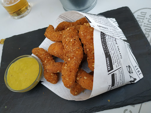 El sitio es cuqui, la verdad que tiene una decoración diferente a lo típico de un pueblo. El chico que estaba en ese momento nos atendió estupendamente, muy amable, simpático y cercano. La comida estaba muy rica a un precio moderado. Las únicas pegas es que hacía un poco de frío, había gente con el abrigo puesto. Y un personaje no paraba de abrir y cerrar la puerta de la calle lo que hacía que el frío no mermara. También vi que al chico le faltaba una ayudita por qué llevaba todo solo y al estar en la cocina la barra quedaba...