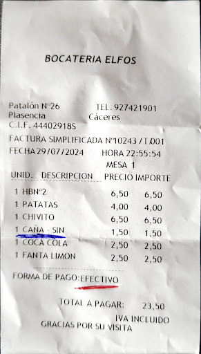 En un lugar de Plasencia de cuyo nombre no quiero acordarme, existe un lugar donde las patatas fritas son incomestibles, te sirven un corto de cerveza sin alcohol cuando pides una caña de cerveza y si pides un cuchillo para cortar el pan seco del bocadillo que te sirven, te darán uno de plástico, de los que hay en el mercadona en las zonas habilitadas para comer, en fin una experiencia muy lejos de ser religiosa, como decía Enrique Iglesias en una de sus canciones. En respuesta a la reseña del "Propietario",tengo que decir que: Para nada mi intención cuando escribo una reseña es hacer daño, solo expresar mi opinión con la experiencia en el local en concreto. Por la mañana estuve haciendo trabajo de campo, para llevar a mi hermano y a mi hijo, a comer y a cenar a locales en los que estuvieran a gusto, en el de la mañana acerté, en el de la noche (Elfos) no. Mi hijo dejó las patatas porque no estaban bien, y me diò una y di fe de ello, a mi hermano le sirvieron un dedal de cerveza que como he dicho más arriba, en el ticket ponía sin, entiendo sin alcohol. En relación con el cuchillo, pedí un cuchillo, y me dieron el que detallo más arriba, no insistí pues pensé no tenían otro tipo de cuchillo. A parte de ello, en el ticket pone pago en efectivo, y el pago se realizó con contactless. No dudo que el resto de gente hayan estado genial, pero nosotros no, ya lo siento por ser SINCEROS. Será que la magia se rompe los lunes, en fin....
