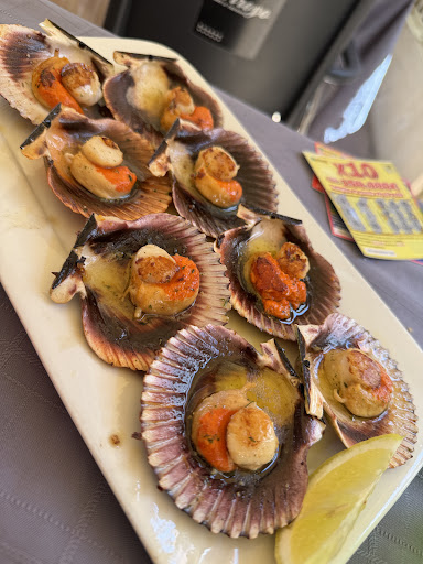 La comida: mala no, lo siguiente. Pedimos unas zamburiñas completamente insípidas, y un arroz de almejas y vieira que el dueño nos recomendó como especialidad de la casa. Pues bien: el arroz estaba seco, sin sabor, con textura de chiringuito cutre. Decir que eso era meloso y que representa la especialidad de la casa es una tomadura de pelo. Sinceramente, uno de los peores arroces que hemos comido nunca.