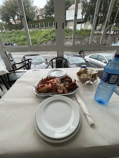 Read moreUf!! Menú imposible de digerir Fuimos hoy a comer por recomendación de un amigo y todo sea dicho le reclamaremos los 60 que nos cobraron aquí más los 50 euros que nos costó comer después en otro sitio, comida de verdad y de calidad. Bueno vamos al lío o sea al menú: De primero nos sirvieron una bandeja con un gruño, seco e insípido, cuatro minis cigalas secas, tiesas, otros tantos langostinos y unas poquitas de quisquillas, todo tenía pinta de haber sido recongelado. Después unas almejas y unos percebes Dios!! Si lo anterior estaba malo esto ya no se tragaba, las almejas no sabían a nada y sin una pizca de sal, las almejas sin sal? Y los percebes xd!! No sabían bien, eran totalmente insipidos preferible qué, no los pusieran, fueron de vuelta. El pescado!! Creo que debido al tiempo que llevaba congelado y al ponerlo a la plancha sin descongelar, no tenía buena pinta, fatal! Bueno no todo era malo, las bebidas y las patatas estaban bien Y los camareros agradables. No comprendo cómo hay personas que comen eso y les parezca bueno, pero tiene que haber de todo en la viña del señor. Está claro que nadie dá duros a cuatro pesetas. No volveremos y no...