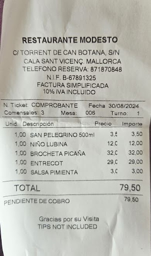 The bill arrived and the nightmare experience of eating in the new and hugely inferior Modesto continued. The meals were not discounted. They were charged at their normal prices which cannot be considered reasonable or fair. It is an expensive restaurant, which is not reflected in the quality or service.