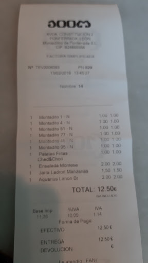 Read moreLa comida estupenda siempre confío en 100 montaditos cuando no se exactamente que comer porque hay de todo, pero esta ultima vez pedi de beber una cerveza Paulaner y una jarra fría, supongo que por educación me la echó en la copa el que me atendió, pero este tio no ha servido una cerveza en vaso su vida,espuma de arriba a abajo literalmente y tuve que esperar a que bajase la espuma porque él no tiene ni idea de servir, me estropeó literalmente la cerveza, no soy sumiller pero soy bastante maníaco con la cerveza y cualquiera persona que le guste la cerveza y la valore opinará lo mismo, ni sabe igual ni la disfrutas igual, no le dije nada porque estaba con mi novia, llego a estar solo y hago que me ponga otra. Aun así no dejaré de venir a 100 montaditos porque un coletas no sepa servir...