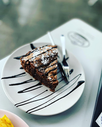 Acompañamos las bebidas con: -brownie 🥧 🍫 calentito que era una auténtica pasada, muy parecido al verdadero brownie americano muy jugoso y con el toque de cocción justo -tortilla de patata 🥚 🥔 🧅 aquí sí saben hacerla, con cebolla y poco cuajada, espectacular además de que la porción era muy generosa -Tosta con tomate 🍅 natural triturado y aceite.
