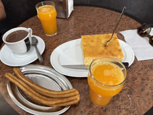 Highly recommended! The prices are super reasonable, and the owner is really nice. I ordered in English—he might not speak much English, but he was very patient and made sure everything went smoothly. The churros with chocolate were amazing, the fresh orange juice was delicious, the coffee was great, and the cakes were tasty too! The place is very clean. The staff clean the tables regularly and even use spray to wipe them...