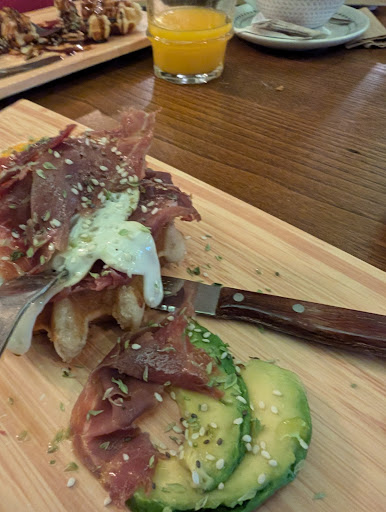 We had waffle with chocolate, waffle with egg and ham and a avocado toast, as I said, all really good. They also offer tortilla or sponge cake as "aperitif" while you wait for your order to arrive.