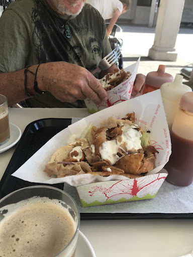 Read moreIch war schon seit zwei Wochen am Pilgern und hatte nun richtig Bock...aber so richtig Bock auf einen vernünftigen Döner der einen satt macht. Im Laden selbst wurde ich dann auf das Menü hingewiesen welches 2€ teurer ist aber neben einem Döner auch eine Portion Pommes sowie in Kaltgetränk enthielt. Der Döner war so groß das ich erst das Fleisch einzeln essen musste, eh ich es schaffte den Döner ganz zu packen und zu essen. Besonders gut gefallen hat mir das die Soßen extra in Tuben bereitgestellt waren, so konnte ich selbst entscheiden wieviel Soße ich haben möchte. Vielleicht lag es auch an der Stadt denn wenige Hapen später hatte ich auf der Terrasse besuch bekommen. Wie eine Art Geierschwarm um eine "Leiche" kreiste eine Herde Tauben um meinen Platz herum. Teilweise auf meinen Tisch. Zwar lief alles Gut, trotzdem hatte ich Angst, das die Tauben mich angreifen oder sich gar auf meinen leckeren...