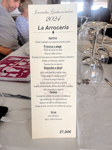 Increíble, no puedo decir otra cosa, Chicote fliparia con la bechamel de las croquetas, tanto las de chipirón como las de jamón.....en dos palabras IN-CREIBLE. En cuanto a los arroces......pedimos arroz negro, risoto de setas y cecina, y arroz caldoso con langostinos y cigalas. Personalmente, a mi el arroz negro...bueno, toda comida que lleva tinta de calamar, me da mucho reparo, no está malo, de 7 comensales solo uno (yo), fui incapaz de comerlo, (por mi problema con la tinta), el resto encantados. Personalmente, he de decir que lo que más me gustó fue el risoto de setas y cecina ¡¡¡manjar de dioses!!!. Bueno, y mi mayor sorpresa ¡¡¡¡la tarta de queso casera!!!!, que si me dicen que la han traido directa de La Viña, me lo creo....Manjar de dioses, en serio, no lo dudes, ¡¡PIDELA!!! En cuanto al local, acogedor....salvo cuando queda la puerta abierta.....pelin de fresquillo. Eso sí, si tengo que dar una nota....un 10000 sobre 100, al trato de la camarera. No se como te llamas, pero rubia ¡¡¡eres un encanto!!!, que sepas que emocionaste a mi madre con las palabras tan bonitas que dedicaste a mi hermana. En fin, que 100% recomendable, como ir a la Meca, mínimo una vez en la vida hay que probarlo!!!!!!(si puden...