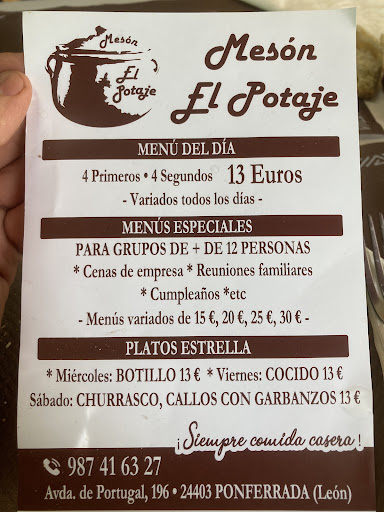 Camino a Galicia hicimos parada en Ponferrada para comer y buscando en Google dimos con este restaurante. Menu de fin de srmana 17€. De primero cogimos callos con Garbanzos que estaban tremendísimos, y de segundo brocheta de pollo con ensalada y mi marido escalope con ensalada, rico. Postres caseros, en nuestro caso arroz con leche y crema de limón. Riquísimos.