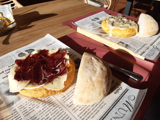 Read moreEstuvimos 4 personas y al llegar solo había una mesa ocupada dentro Pedimos 3 tortillas individuales en pan de cristal ( los cuales llegaron como un bocadillo sin pan de cristal y no era una tortilla individual entera) un sándwich (que era enano) y un entrante que nos llegó frío. Poco más que decir de la experiencia, solo que empezó a llegar gente y su comida salía antes que la nuestra, nos quejamos a la camarera tanto de la tardanza como de que lo que habíamos pedido no tenía nada que ver con lo que ponía en la carta, su solución fue cambiarnos lo pedido, pero no se trata de eso, trata de que si pedimos una tortilla individual en pan de cristal, dinos que no es pan de cristal y que no es una tortilla individual entera y ya decidimos si pedimos otra cosa, desde luego...