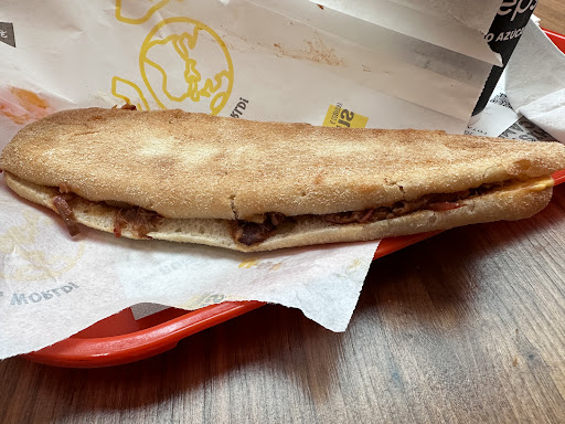 Read moreRealmente es vergonzoso que te llegue un pedido abrir el bocadillo y encontrarte con 2 mini pechugas con un grosor inferior al cartón que te viene con el bocadillo y encima no son capaces de poner una tercera para llenar la parte de el medio. Conclusión, un menú de bocadillo de tomate y lechuga no valen 8,95. PD: el ketchup que es lo que más luce eso lo...