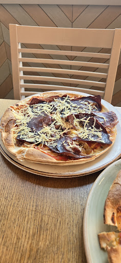 Ayer fui a un restaurante italiano con la ilusión de comer una buena pizza.Spoiler: salí con más hambre que después de una clase de zumba sin desayunar ,y 23 euros menos,que me dolieron más que la masa que intentaron colarme como pizza. Pedimos una pizza de jamón cocido y queso.¿Y qué decir? Más que una pizza, parecía una hoja de papel con ansiedad,literalmente era un folio con topping. La masa era tan fina que si respirabas fuerte se volaba del plato, aquello era extra finísima,versión low-cost.