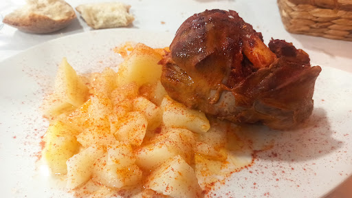 Read moreMesón pequeño, mesas hacinadas, anunciaban churrasco en la entrada Con el menú fin de semana y de churrasco nada. Arroz con bogavante tampoco. Los pimientos rellenos de bacalao de bote, con una bechamel Que reblandecía la cebolla crujiente que le ponen encima y dos pasas y un arándano. Los platos para la carne de la feria de cerámica de la encina, plato hondo para comer un segundo el barniz cerámico ya estaba desgastado y se iba cortando con el cuchillo, la ensalada de queso de cabra ni tú ni fa. El entrecot De ternera no era ni entrecot, Si no un filete grueso, duro y lleno de nervios, las patatas pasadas y la ensalada cuatro hojas de escarola puestas allí, la carne fría y el plato más, que menos que poner a calentar los platos de arcilla para mantener la comida caliente. El solomillo de toro ni solomillo ni de toro, también duro lleno de nervios, Las patatas de nuevo pasadas y la ensalada cuatro hojas de canónigos con vinagre de Modena. La tarta de queso de tarta nada, de queso menos si acaso una mus o una cuajada de esas que venden de Royal en el Super, El flan fue lo único salvable de la comida con un pegote de nata montada en un lateral y poco más, el vino un mosto suave sin llegar a macerar y el café malo de verdad, comparable a los de los bares de las autovías Muy fuerte, casi todo agua y la leche Super quemada. 50 € Mal invertidos, cualquier bar de carretera da menús de mucho mejor calidad por seis euros de diferencia por barba....