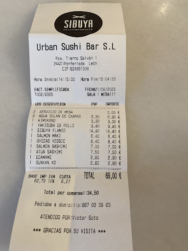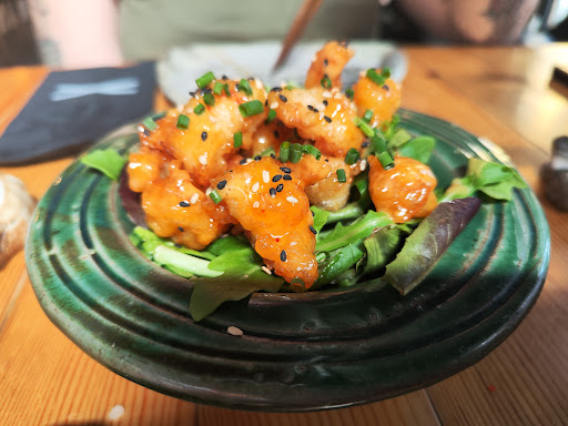 Read moreA ver... por dónde empiezo? Hay que decir que me encanta la comida japonesa, cuando viajo me gusta buscar el japonés del lugar y probar sus platos, por lo que me alegré mucho que por fin hubiera uno en Ponferrada. Tras varios intentos de reserva en los que nadie me aviso de que por las noches sólo puedes reservar de 9 y cuarto (no 9 y media) y tienes que desalojar a más tardar a las 22h45, conseguimos mesa para cuatro. El local es bonito, para nada oriental, la música que sale bastante fuerte de los altavoces, tipo Bershka o Stradivarius, ya te indica que nada de sobremesa. La comida.. pss! Ni fú ni fá. Las piezas de sushi de los combos, diminutas. Muchas piezas pero tamaño Barbie. Mucho ruido, conversaciones a gritos. Cuando dieron las 10 y media, la jefe de sala vino para recordarnos que teníamos que irnos a menos cuarto (!!!). Con traernos la cuenta nos habría bastado. Se la pedimos. Pasan 10 minutos y todavía estamos esperando por ella. Alega no habernos oído pedirla. Con pinganillo y música machacona, tal vez resulta difícil oír al cliente. Pagamos y vuelve a decirnos que ya es hora de levantar el campamento, le explicamos que estamos esperando por las vueltas. 25 euros por cabeza. Me voy ahora a preparar un bocata. Espero que cambien la política de atención al cliente, porque me interesa de verdad que siga habiendo un japonés en mi ciudad y espero que rectificando sea un gran éxito. Mientras tanto, nosotros cuatro no volveremos. La corta "velada" ha resultado...