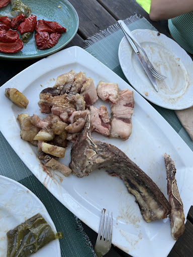 La mesa estaba en una esquina oscura, al lado de un altavoz antiguo con la radio mal sintonizada (lo que hizo que comiéramos todo el rato con ruido molesto) cuando el interior del restaurante, incluso la galería, estaba casi vacío.