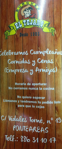 Read moreD EL TEJANO solo se pueden decir, hablar d sus VIRTUDES, xq es un local ENORME, MUY BIEN ATENDIDO, y q los PLATOS RAPIDOS q sirven estan muy bien cocinados, hechos Y SIENDO D BUEN PRECIO, ECONOMICOS. Aún x encima, con las PANTALLAS GIGANTES Q TIENE, 4 en total, mientras meriendas ó CENAS, T PUEDES VER MUY BIEN, un acontecimiemto deportivo, como el FUTBOL. Y PARA AÑADIR MÁS, decir q en PRIMAVERA-VERANO, en su terraza exterior, Se COME ó CENA, Se está d maravilla.😍 sí. ES EL TIPICO SITIO, LUGAR DONDE 1 SE ENCUENTRA MUY BIEN, y vuelves muchas veces si ó si. EL DARLE 5 ESTRELLAS, ES QUEDARSE CORTO EN SU PUNTUACION, xq si se pudiese, yo le daria 6 ESTRELLAS. YO YA SE LO DIJE un par d veces al dueño, y es q si PUSIESE UN LOCAL IGUAL en una ciudad como VIGO, X ejemplo, en menos d 10 años se Jubilaba, y con un fortunón, xq en VIGO, Se forraría, llenaria sus bolsillos, d mucho...