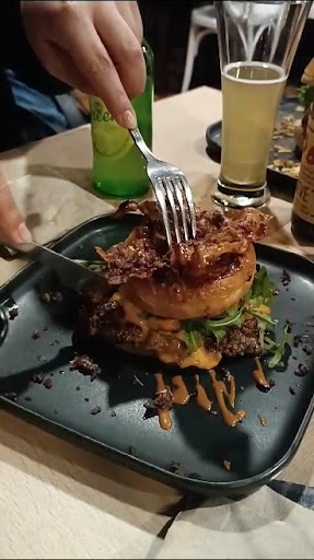 Read moreNo tenía pensado dejar una reseña por que la comida del local fue muy buena pero viendo que la dueña pide rigor a la reseña de mi colega me veo obligado a responder. Dos de mis compañeros y yo llegamos a la hamburguesería a las 20:40 del Domingo 3 de Diciembre, solo había 2 mesas ocupadas y la camarera vino rápido a cogernos nota de las bebidas. Mientras esperábamos fueron llegando otros grupos a los cuales fueron a tomarle nota de bebidas de uno en uno, en una de estas nos acercamos a la camarera para decirle que ya sabíamos lo que queríamos y nos dijo que ahora mismo nos atendía. Pasaba el tiempo y al ver que no venía, yo mismo me acerqué a la barra para intentar facilitarle el trabajo ya que se veía que estaba trabajando en el ordenador donde, por la cantidad de pedidos que se veían y las continuas entradas y salidas de repartidores, estaría atendiendo pedidos. Ella me dijo amablemente, de nuevo, que ahora se acercaba por nuestra mesa y eso hizo, el pedido fue tomado a las 22 menos 20 y la comida salió bastante rápido, ya que a las 22:16 fue la hora en la que pagamos mediante bizum. Seguramente vuelva a este local por que estoy seguro que nuestra experiencia fue excepcional ya que no hay mas reseñas quejándose por el tiempo de espera. Entiendo que el negocio tiene que preocuparse lógicamente por los pedidos de las distintas aplicaciones de comida y es normal que tenga una gran demanda por que su producto es bueno, pero es bastante desagradable que nos pida "rigor" cuando todo lo que se ha dicho sobre nuestra experiencia personal, que no tiene por que ser la que el local...