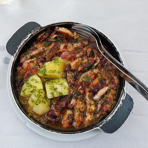 I always looking for smal typpical lokals, to test the local dishes. I noticed, this small restaurant with the handwritten menu board. The services was very friendly but could not talk english, so our conversation was limited to hands and feet and a few words in spanish. The wine alone in this beatiful oldtown square athmosphere was really nice. I never tryed octopus bevor, but i felt in love in this restaurant, it was more then delicious! The pan, filled with an aromatic onion sauce, a lot of octopus and garlic potatos was definitly the highlight of the day. Unfortunately the chickpea tripe stew came a little later than the squid. It was also spicy and quite tasty, but it just couldn't top the other dish.