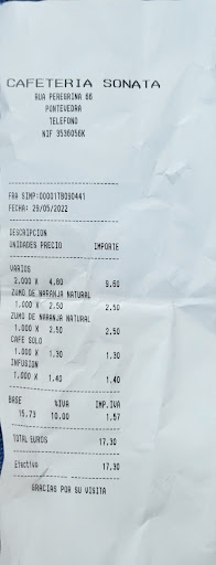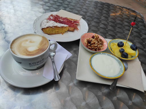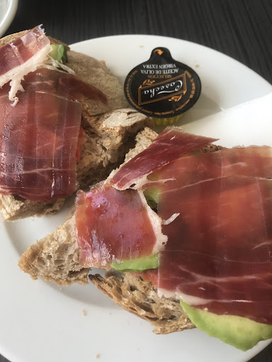 We had breakfast consisting of coffee/tea, toast and orange juice (+a few pieces of fruit). Everything was tasty and especially the bread was very good, but the total seem overpriced compared to what we have been paying for similar breakfasts at other places in Pontevedra. Quite surprised to see that coffee/tea was not included with the breakfast, and the orange juice upgrade (from included tiny to paid small glass) should cost less. Friendly, but very slow service (but the place was full, so mainly a...