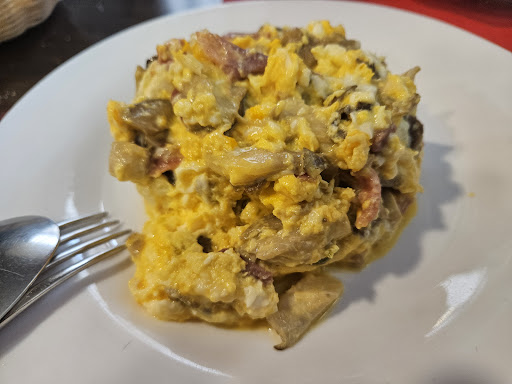 Nuestro refugio gastronómico. El nombre no le hace justicia, lo encontramos por casualidad y nos sorprendió gratamente. Los platos estrella para mi gusto son: a) la tortilla ( soy fan de la betanceira y creo que la supera con creces) de tamaño perfecto para dos, la patata es como crujiente en medio del huevo y con un toque justo de sal. No sé cómo la consiguen hacer así. Probé las famosas de Betanzos y no le hacen sombra. Ninguna en Pontevedra está a su nivel. B) las carrilleras: hay quien ama este plato y quien lo odia, para los amantes: deliciosas. No sé cuántas horas están al fuego pero se deshacen en la boca y la salsa está increíble.