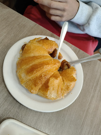 Read moreFuimos a desayunar una mañana y la experiencia fue tan buena que hemos repetido los siguientes 3 días. Cercano al centro, es un local super acogedor y pequeñito. Suele llenarse, pero esperando un poquito siempre se queda alguna mesa libre. Tiene opción de tomar allí o también para llevar. Con lo que pidas para beber, te ponen una tapa (algo que no había visto en la vida!!) Te van poniendo un mini croissant y un mini bocadito de bizcocho de yogur en lo que te sirven el desayuno, para que acompañes el café. Se nota que todo es casero y preparado con cariño. Nosotros probamos las tostadas con jamón, la napolitana de dos chocolates (es de otro mundo)... Pero sin duda me quedo con sus croissants dulces... Los rellenan de dulce de leche, jamón y queso... Todo riquísimo. El precio por persona no es más de 5-6€, la relación calidad-precio es buenísima. La atención es inmejorable. La dueña va por allí a desayunar y es encantadora, pero las/os camareras/os también!! Es un gusto que te reciban, te atiendan y se despidan con una...