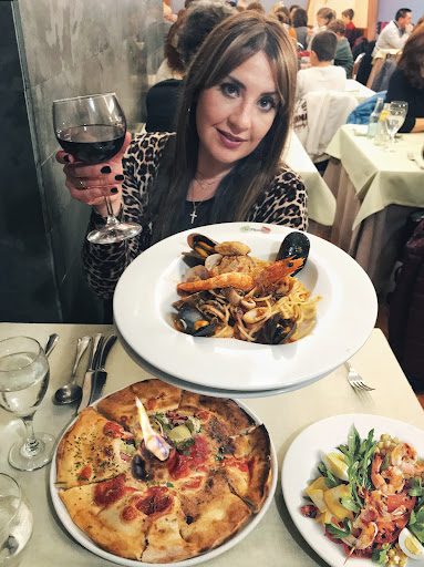 Mi menú fue Pizza Volcano y Pasta Di Mare, postres; Tiramisú y Tarta Emiliana con almendra y turrón.